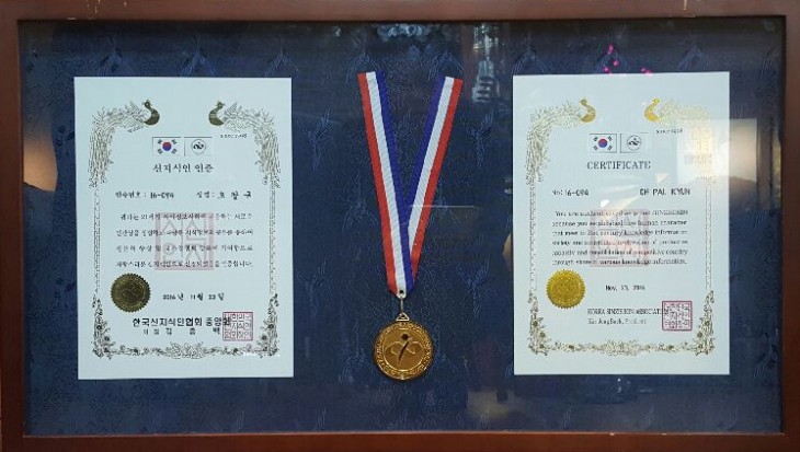 2016년 11월 23일(수), 국회의원회관 대회의실에서 개최된 (사)한국신지식인협회 중앙회(회장 김종백, 이하 협회) 주관의 제28회 신지식인 인증식에서 특허 분야 신지식인에 선정됐다고 밝혔습니다
