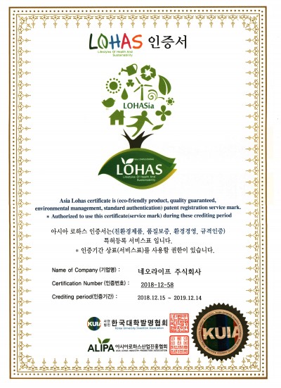 - 아시아 로하스 인증(ASIA Lohas) 건강하고 지속가능한 라이프스타일